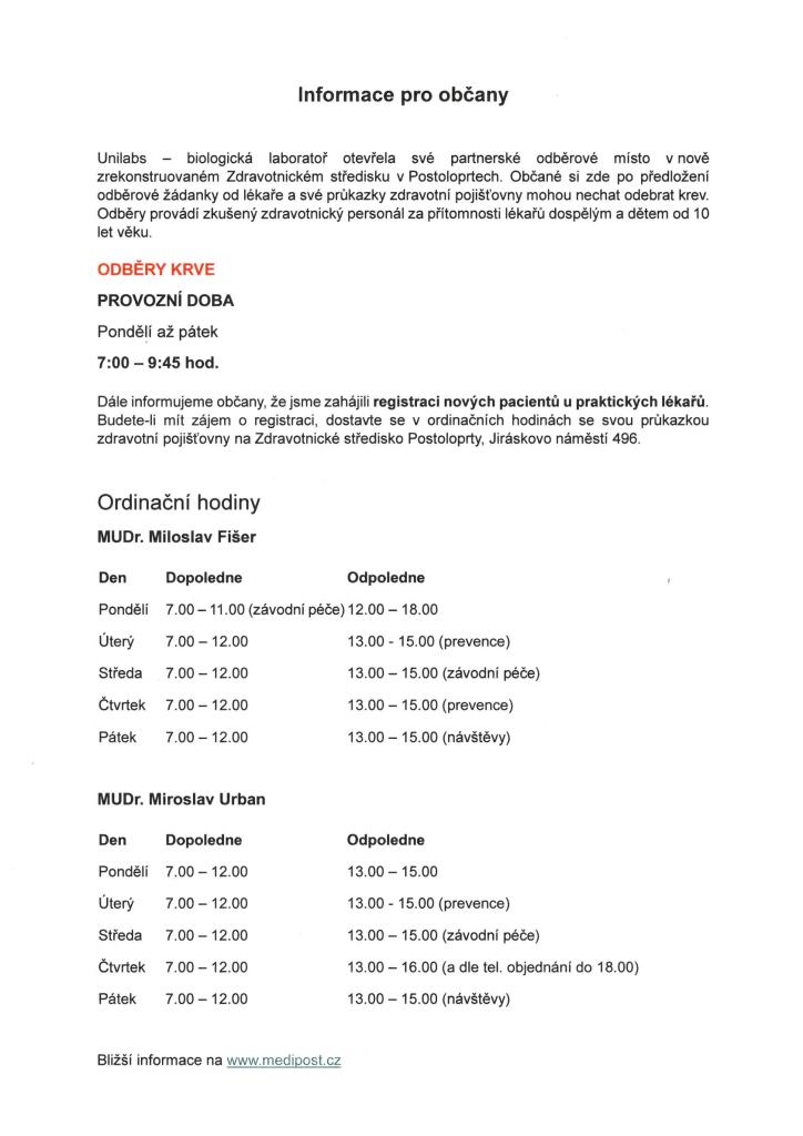 Odběry krve, registrace k praktickým lékařům