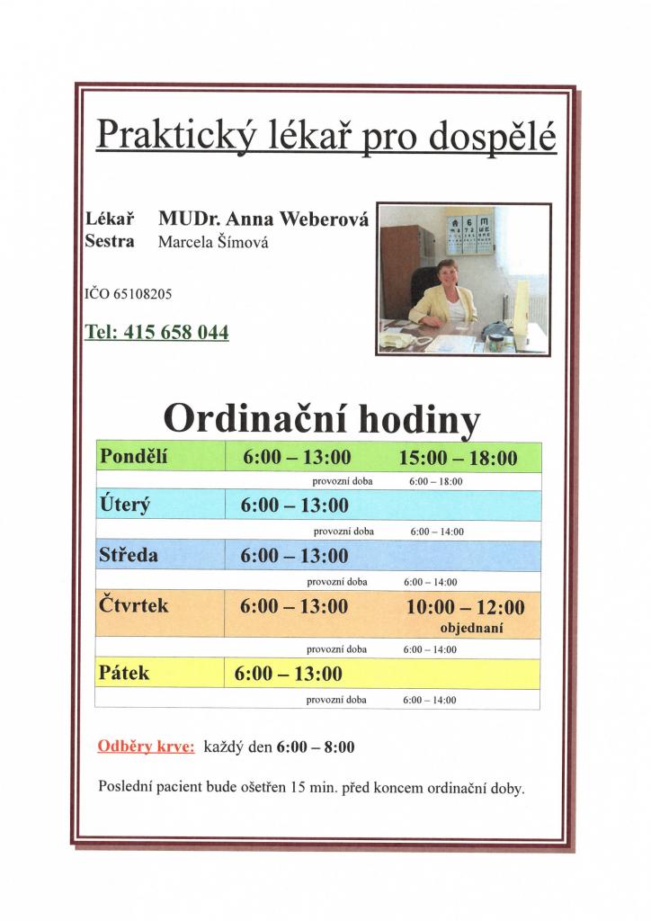 Důležité info k provozu ordinace MUDr. Weberové.