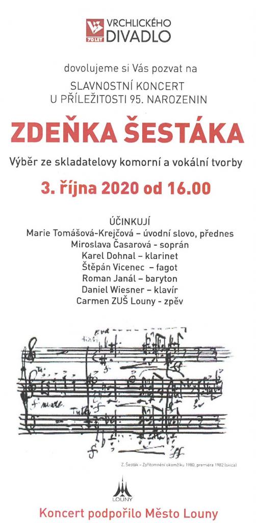 Srdečně zveme na slavnostní koncert u příležitosti 95. narozenin cítolibského rodáka PhDr. Z. Šestáka, který se uskuteční ve Vrchlického divadle v Lounech 3. 10.2020 od 16.00 hodin.