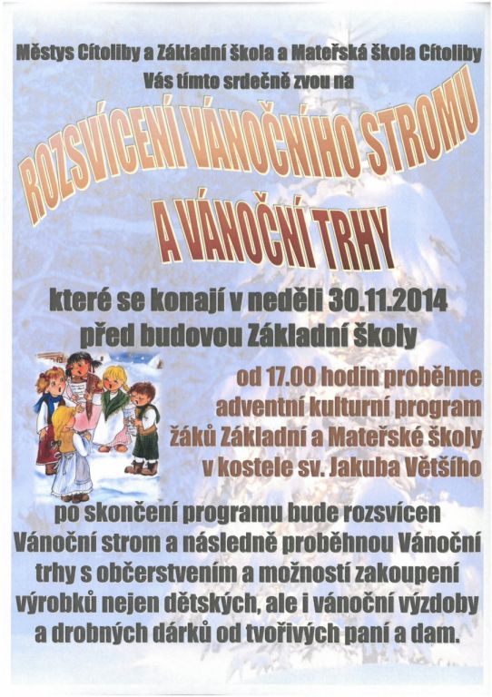 ROZSVÍCENÍ VÁNOČNÍHO STROMU A TRHY