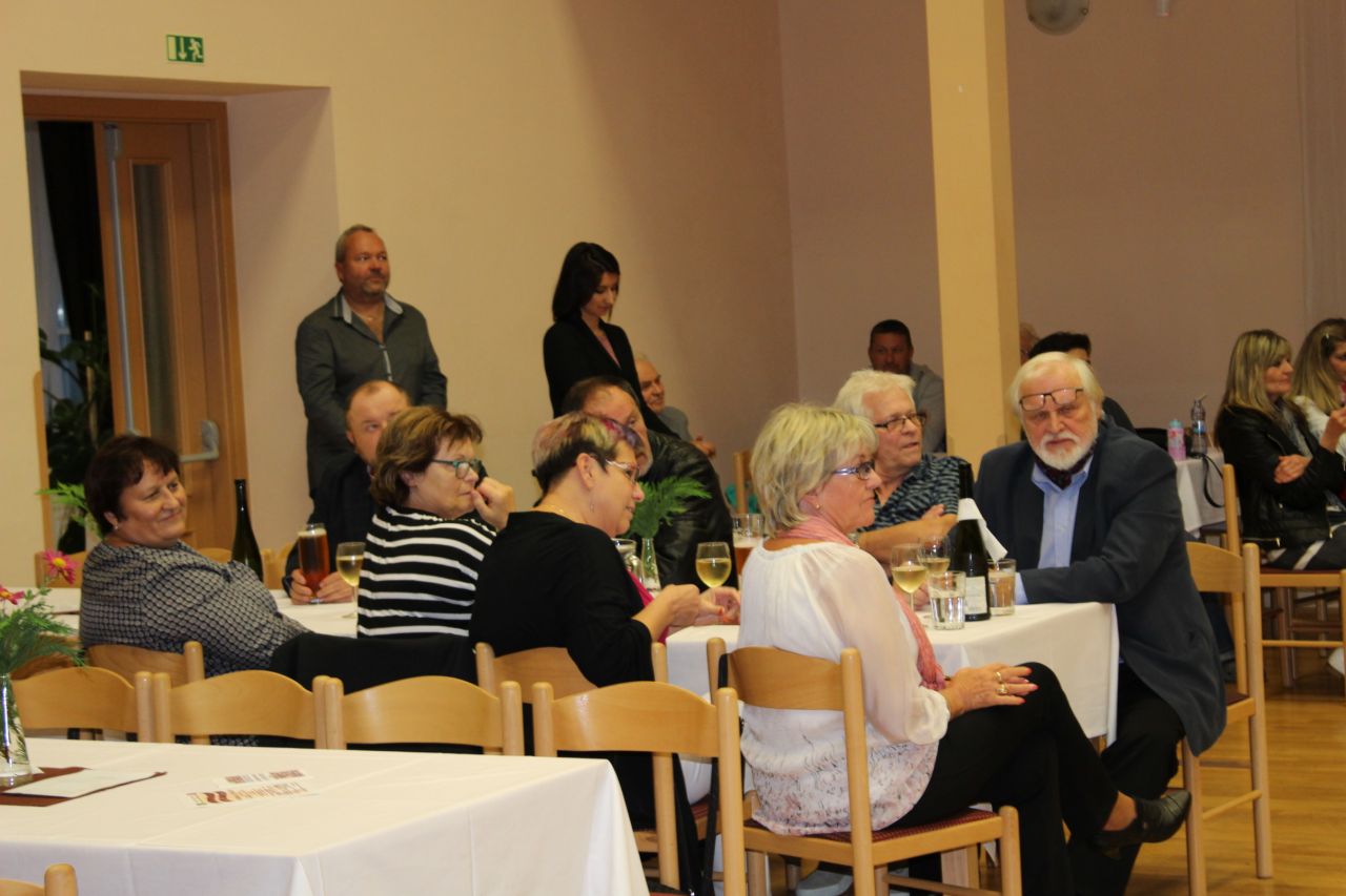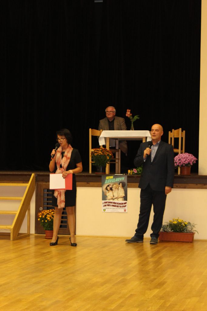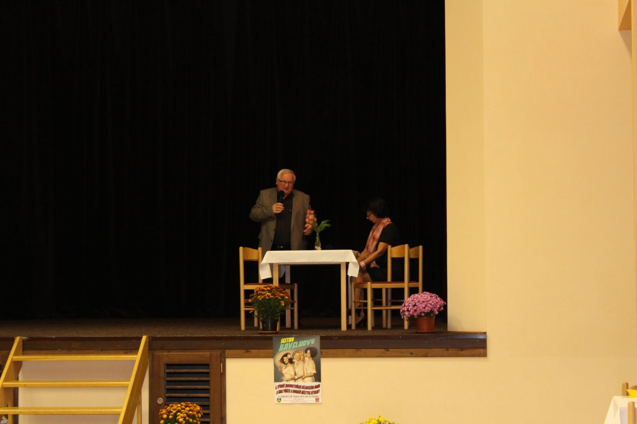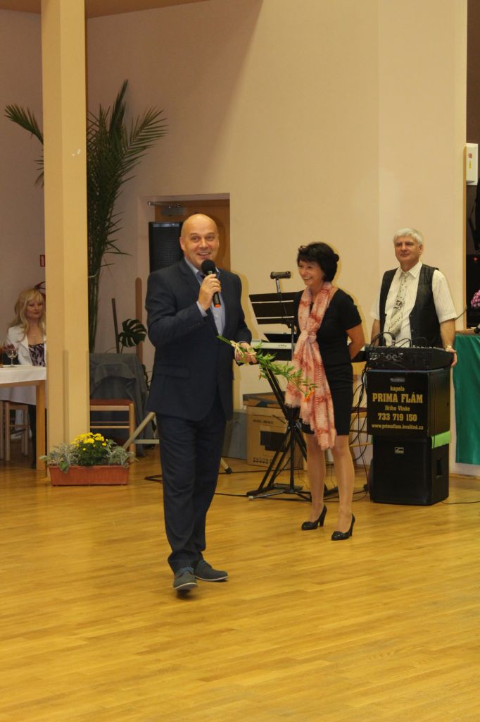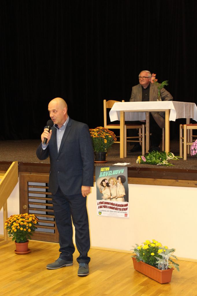 V 17.30 hodin zahájili moderátoři místostarosta Ing. Zdeněk Borl a členka kulturní komise Mirka Kacetlová večerní program. V úvodním rozhovoru odpovídal na jejich otázky starosta Petr Jindřich. Týkaly se nejen Dělnického domu, ale i získání Modré stuhy v soutěži vesnice roku „Za společenský život“, investičních akcí, které letos proběhly a které městys čekají v dalších letech. Starosta poděkoval všem, kteří se na přípravách i průběhu akcí podílejí a také oznámil, že v prosinci letošního roku zaplatíme poslední splátku z 5milionového úvěru, který vznikl za účelem rekonstrukce Dělnického domu. I to byl důvod k oslavě.