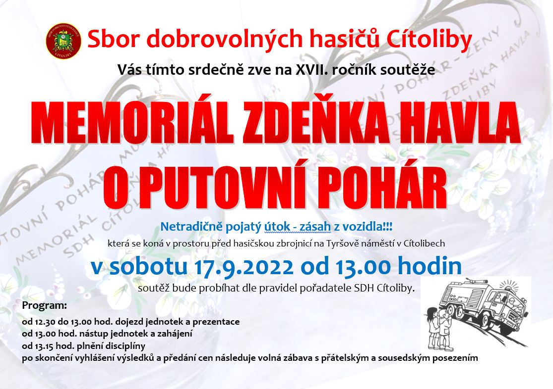 Dne 17.9. 2022 jsme uspořádali Memoriál Zdeňka Havla u hasičské zbrojnice v Cítolibech.