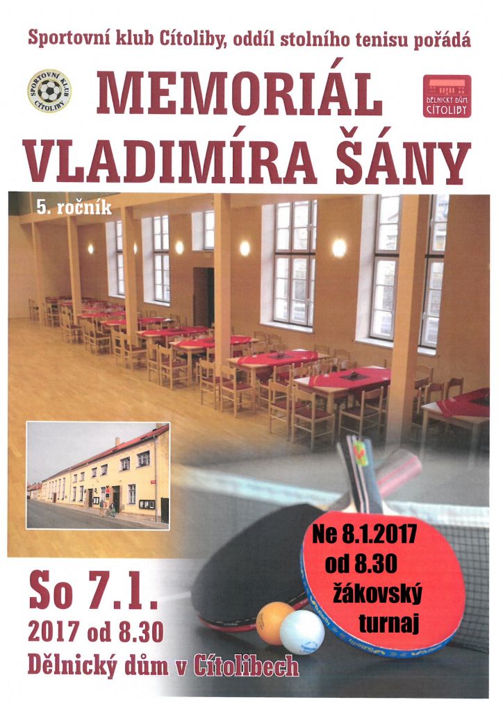 | 07.01.2017 Memoriál Vladimíra Šány ve stolním tenise |