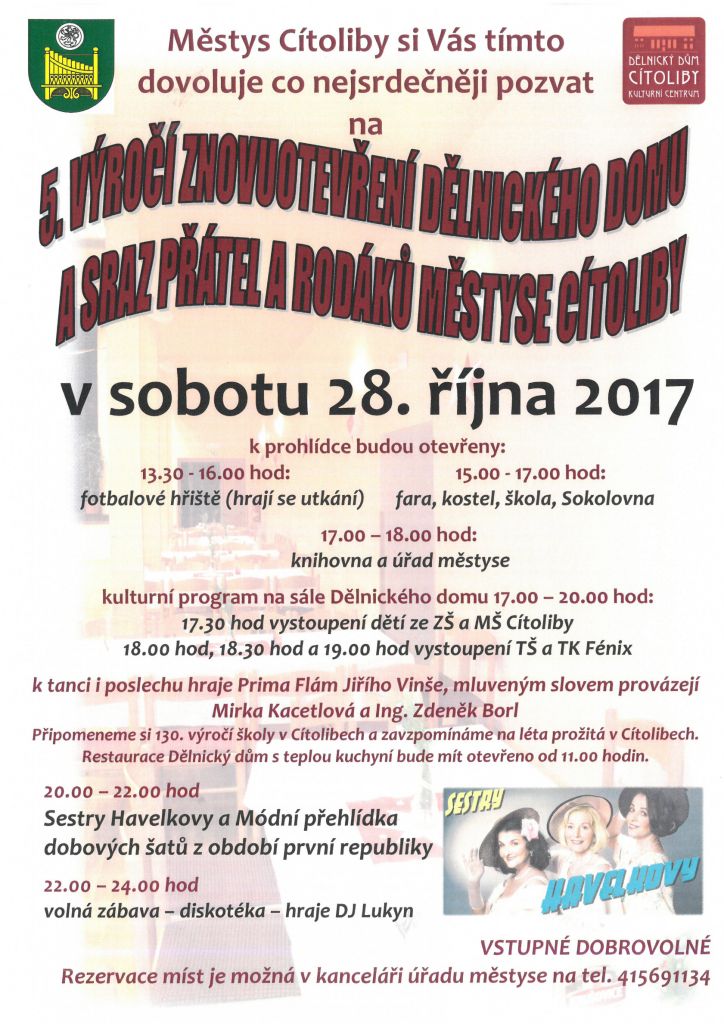 | 28.10.2017 5. výročí znovuotevření Dělnického domu a Sraz přátel a rodáků |